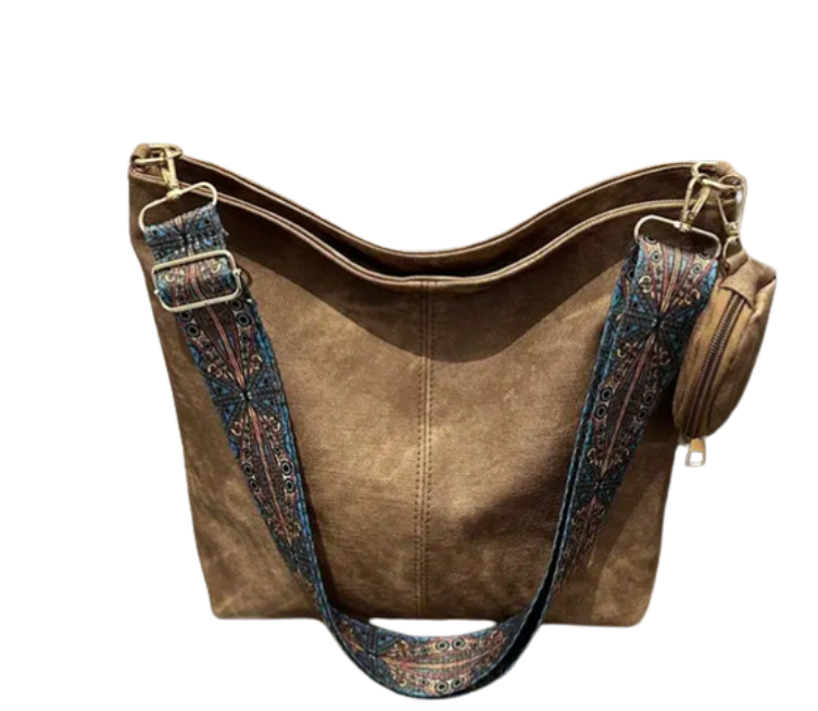 Elegant Khaki Tote Bag with Adjustable Embroidery Strap