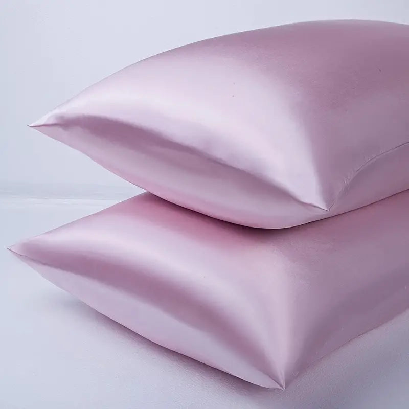 A pair of Luxury Satin Pillowcases, soft and breathable for hair and skin. Locks moisture in skin and hair.