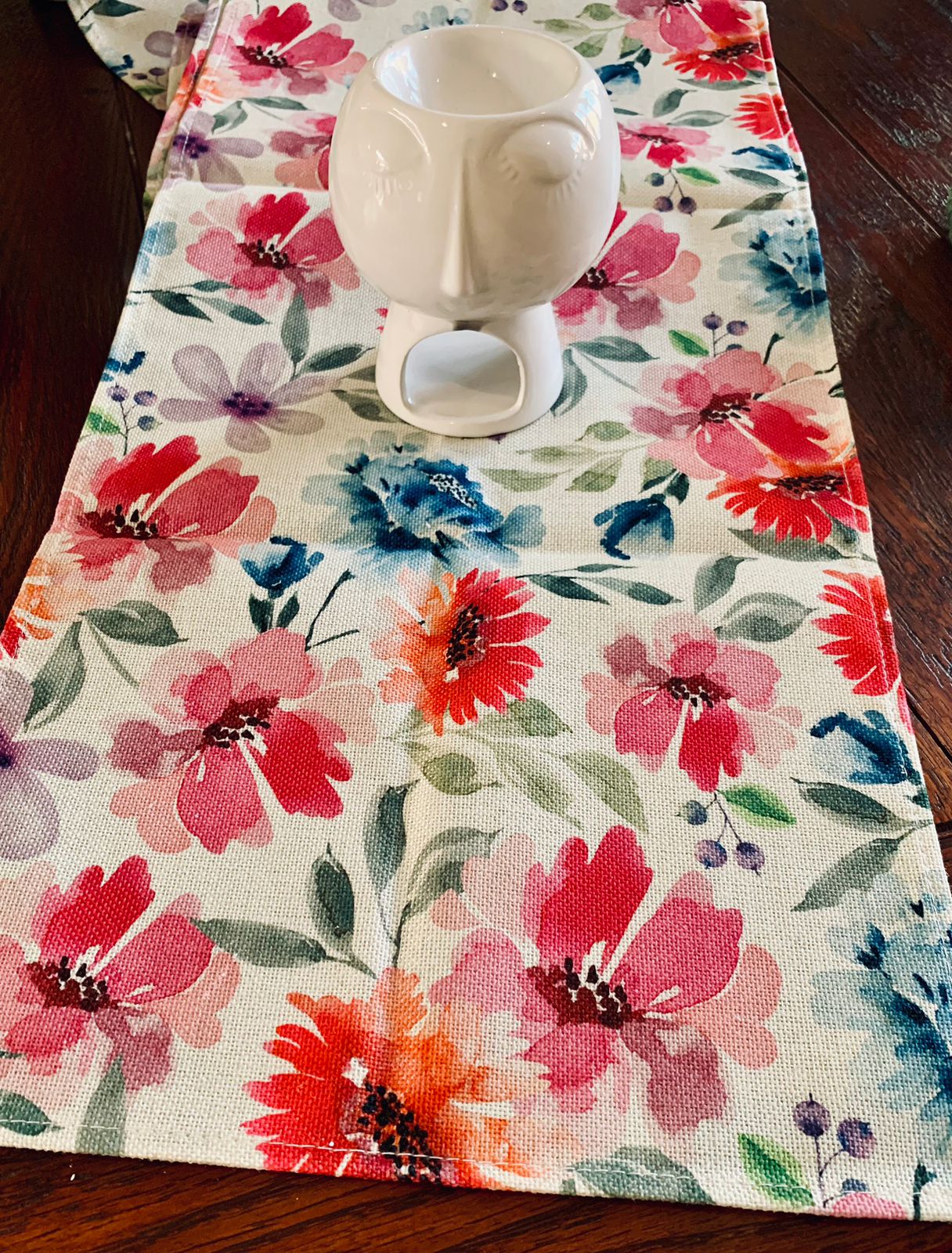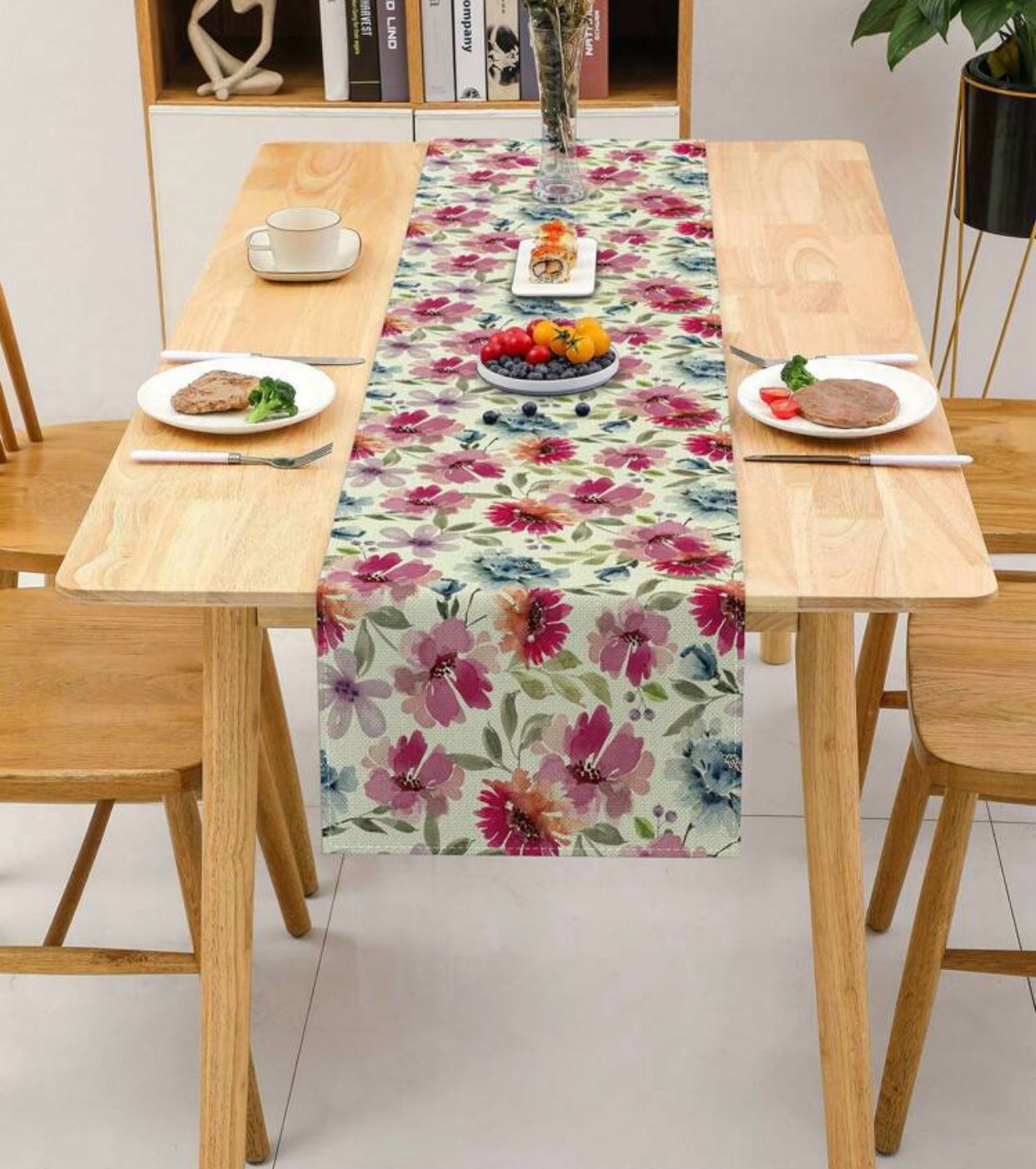DIfferent Shades of Pinks and Blues Floral Table Runner