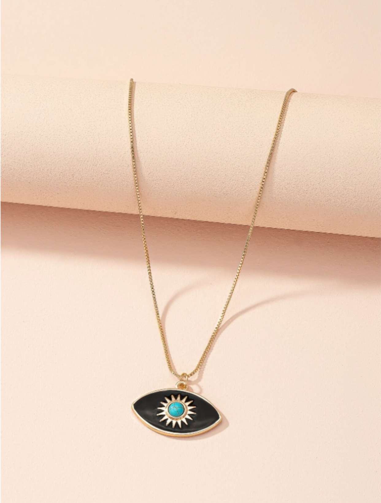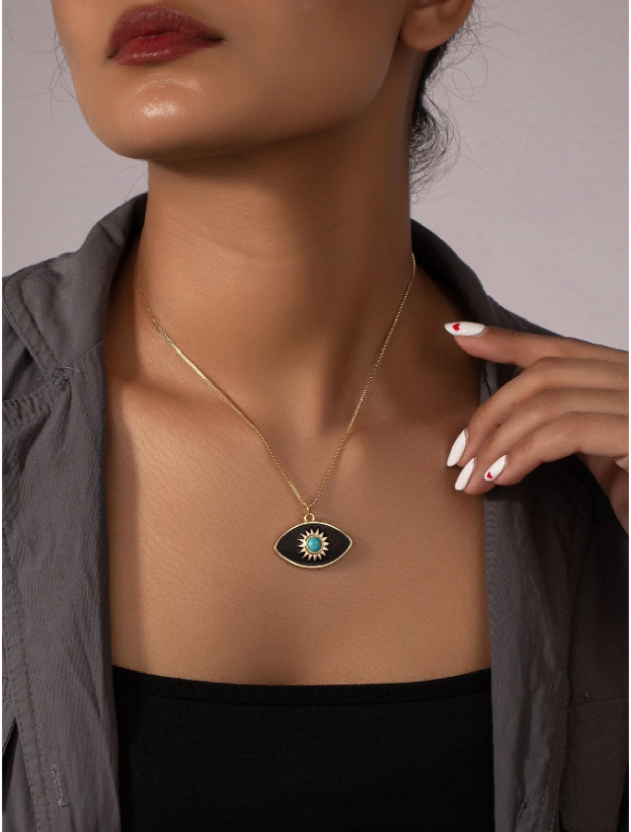 Enhance your look with a touch of mystique and style with our Eye Charm Necklace. Crafted from premium materials, this alluring necklace features a delicate chain that culminates in a captivating eye charm, traditionally considered a symbol of protection and insight. The eye charm serves as the focal point, drawing attention while adding an element of intrigue to your ensemble. Whether you're stepping out for a casual day or dressing up for an evening event, this necklace offers a subtle yet impactful statement. Easy to pair with various styles and versatile enough for daily wear, our Eye Charm Necklace is not just a piece of jewelry; it's a wearable emblem of elegance and empowerment.