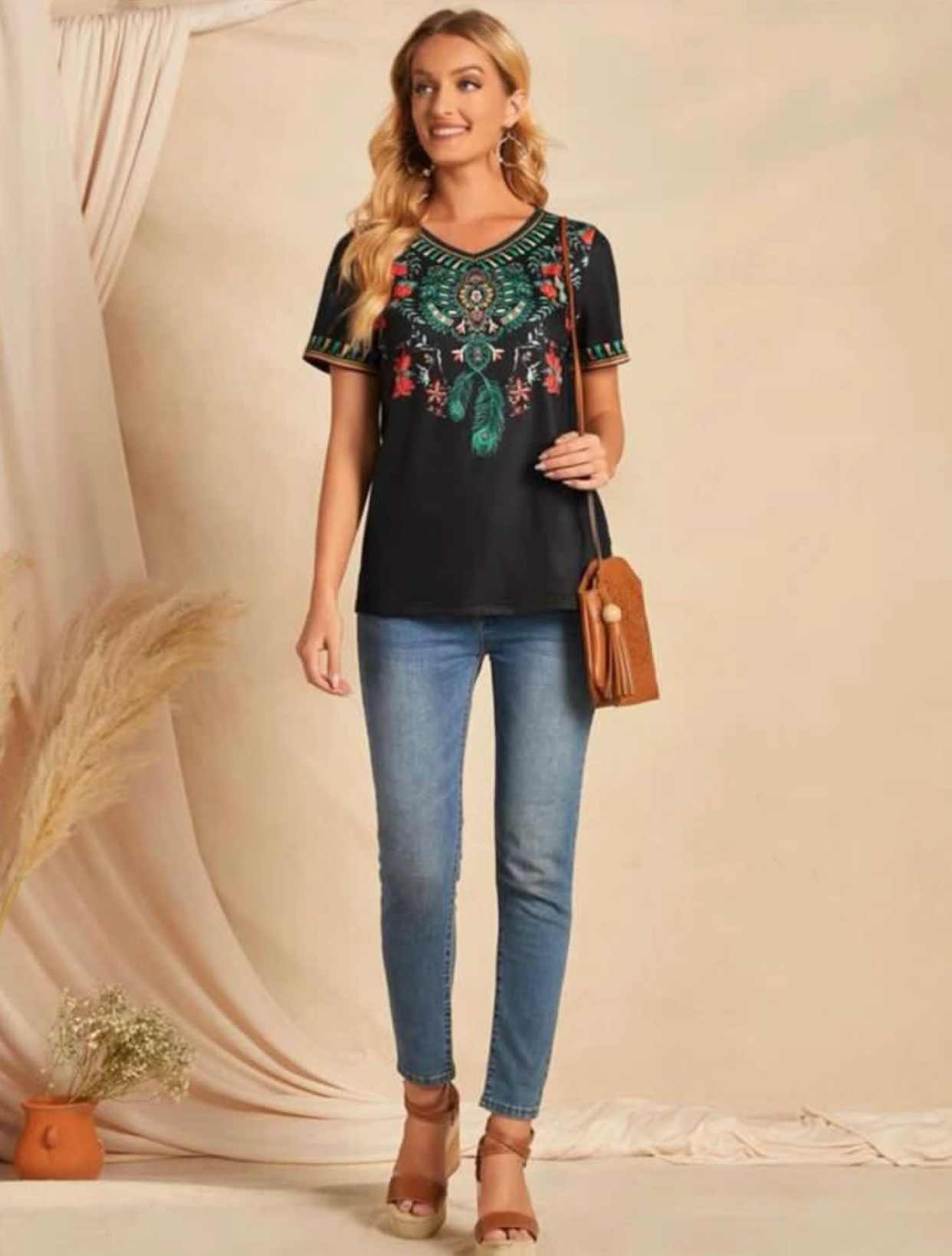 The Black Floral Print V Neck Top is a chic and versatile piece. Its black base is adorned with a delicate floral print, offering a stylish contrast. The V-neckline adds a touch of sophistication, and the overall design is both trendy and easy to wear. This top effortlessly combines floral charm with a classic black hue, making it suitable for a range of occasions.