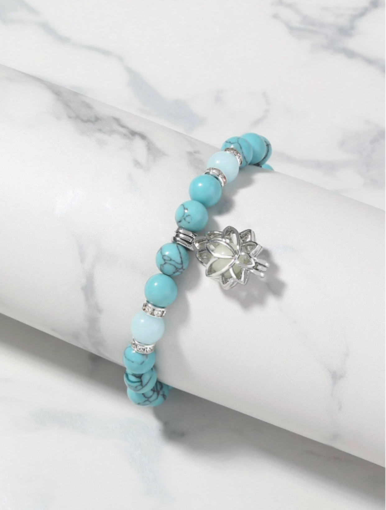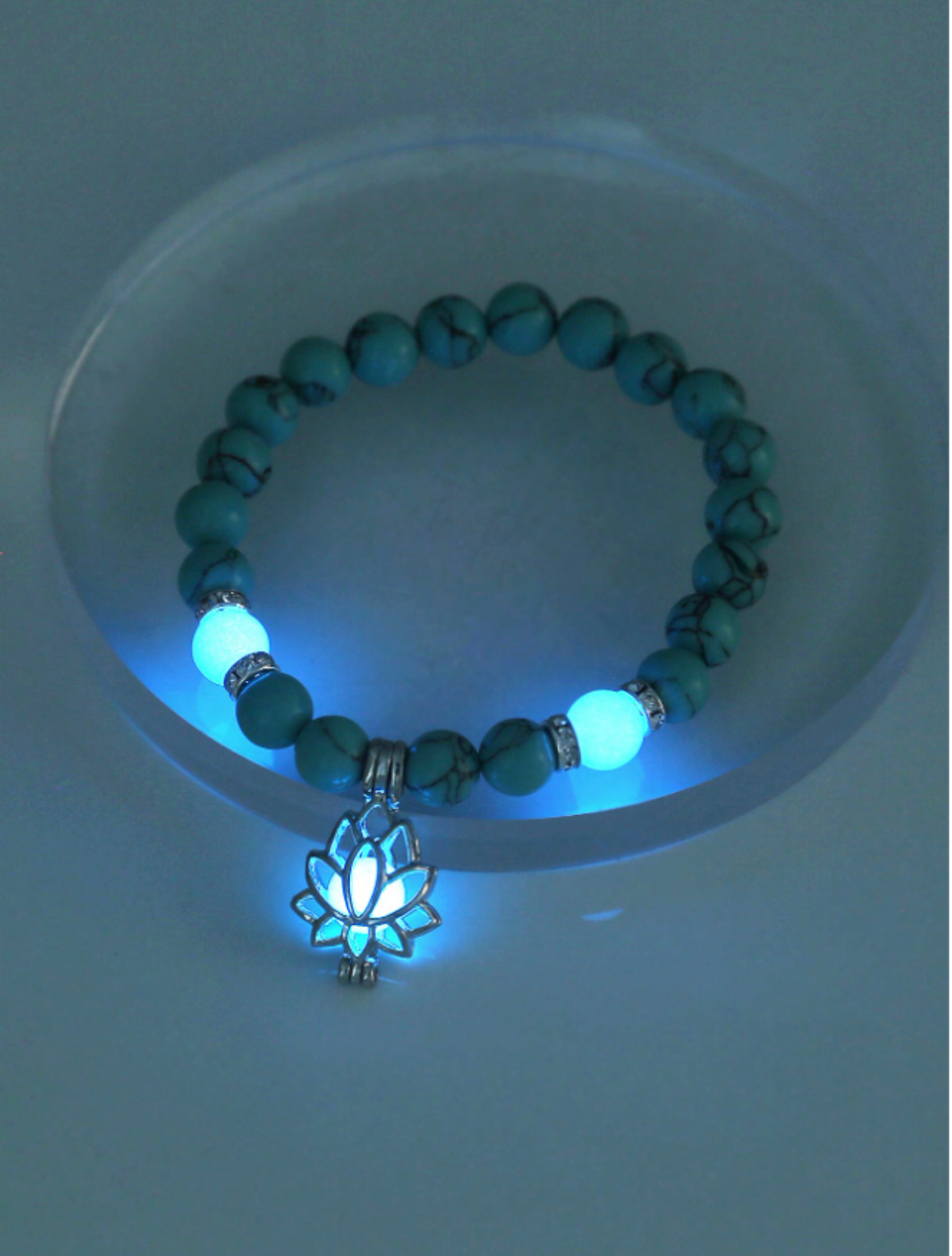 Illuminate the night and your inner spirit with our Blue Glow In The Dark Lotus Bracelet. Crafted from premium materials, this unique piece features a mesmerizing lotus charm that glows a radiant blue in the dark. The lotus, symbolizing purity and enlightenment, takes on a magical quality as it lights up, adding an ethereal dimension to your wrist. Ideal for those who love to blend traditional symbolism with a contemporary twist, this bracelet is both a conversation starter and a meaningful talisman. Whether you're attending an evening event or simply want to bring some light into your everyday life, our Blue Glow In The Dark Lotus Bracelet is a luminous accessory that effortlessly combines spirituality, beauty, and wonder.