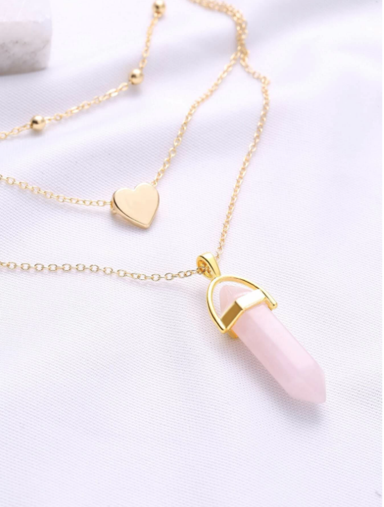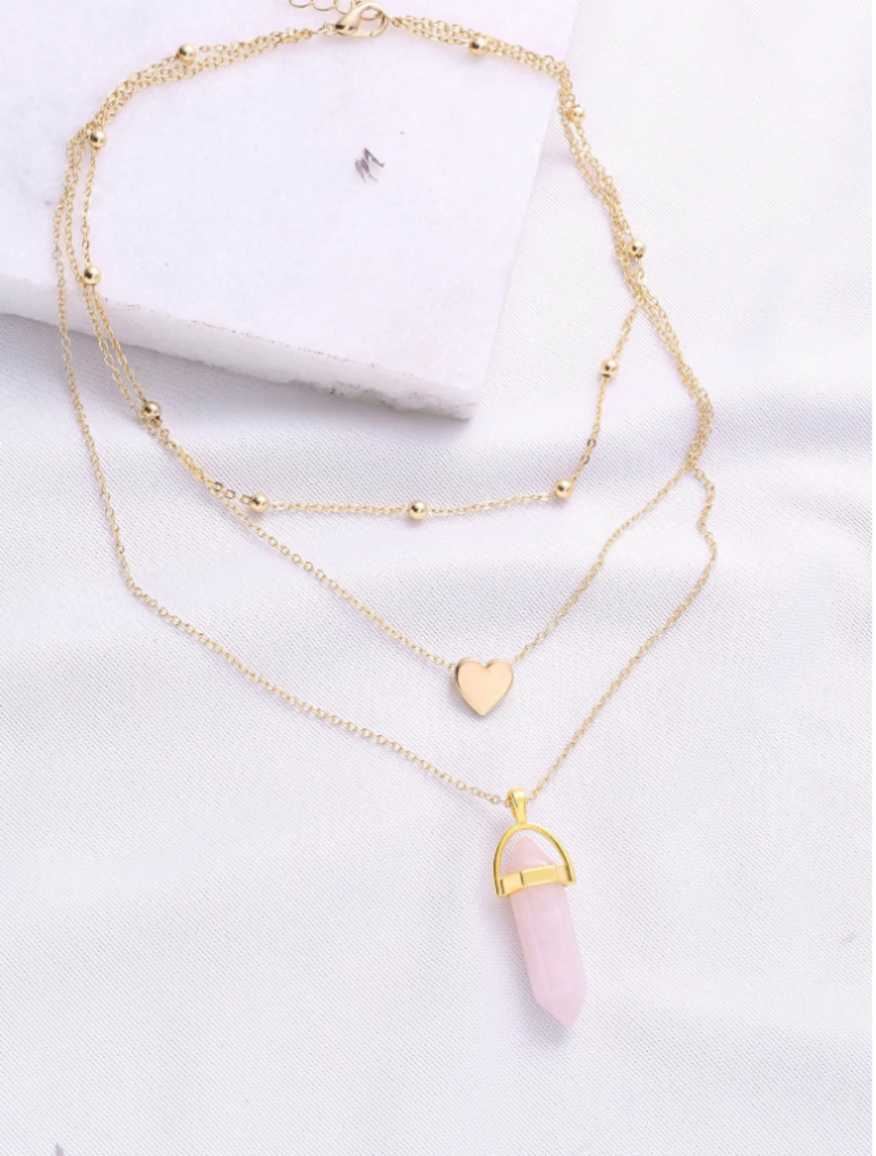 Gold Heart & Rose Pendant Layered Chain Necklace