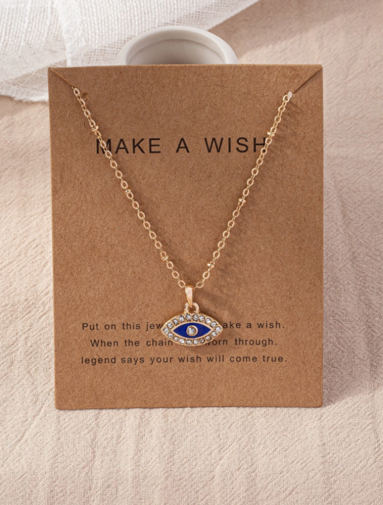 Embrace the grandeur of regal hues combined with age-old symbolism in our Royal Blue & Gold Eye Pendant Necklace. This masterfully designed piece centers on a lustrous eye pendant, inlaid with a deep royal blue backdrop, and encased in a sumptuous gold setting. The eye, an ancient symbol representing protection, foresight, and divine providence, takes on an elevated aesthetic with the rich blue, reminiscent of royal robes and sapphire gems. The pendant gracefully dangles from a refined gold chain, allowing it to catch and reflect light with every movement. Perfect for those who appreciate the blend of history, meaning, and contemporary design, our Royal Blue & Gold Eye Pendant Necklace adds a touch of elegance and mystique to any ensemble.