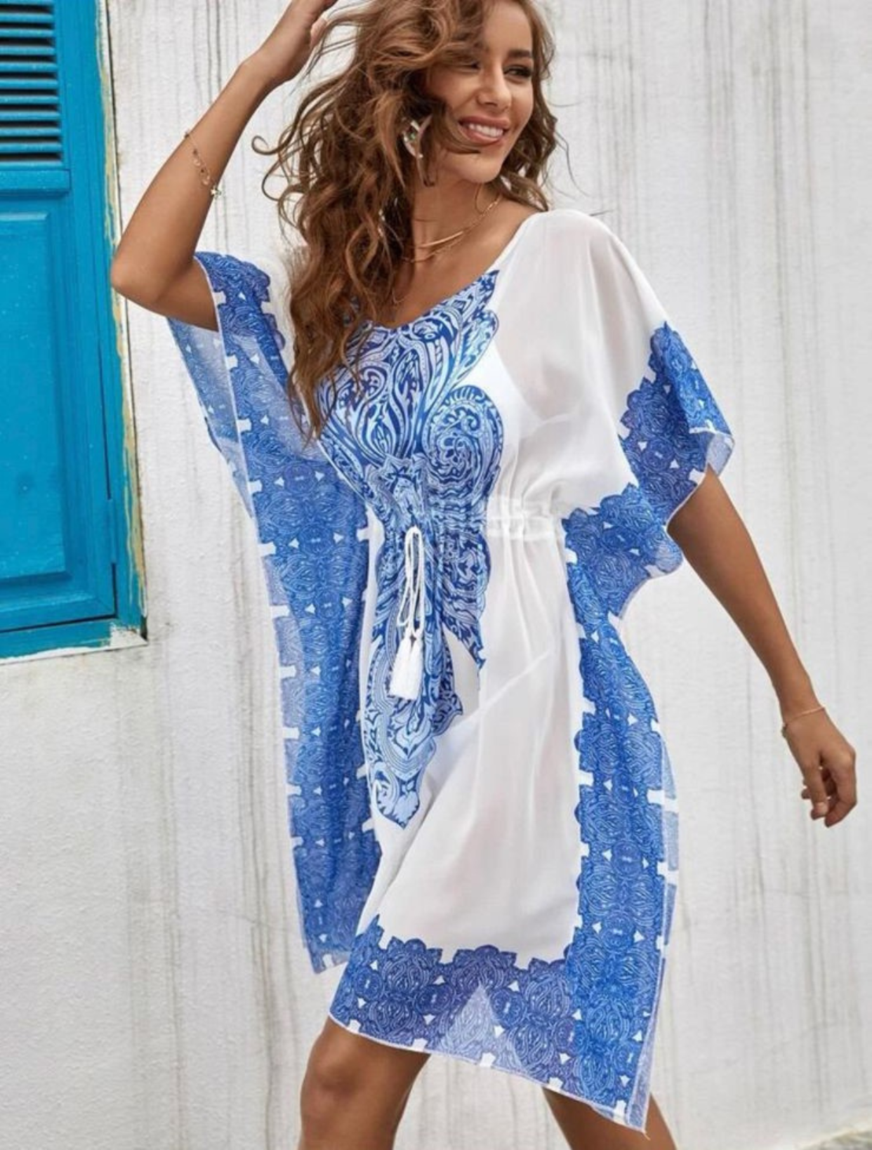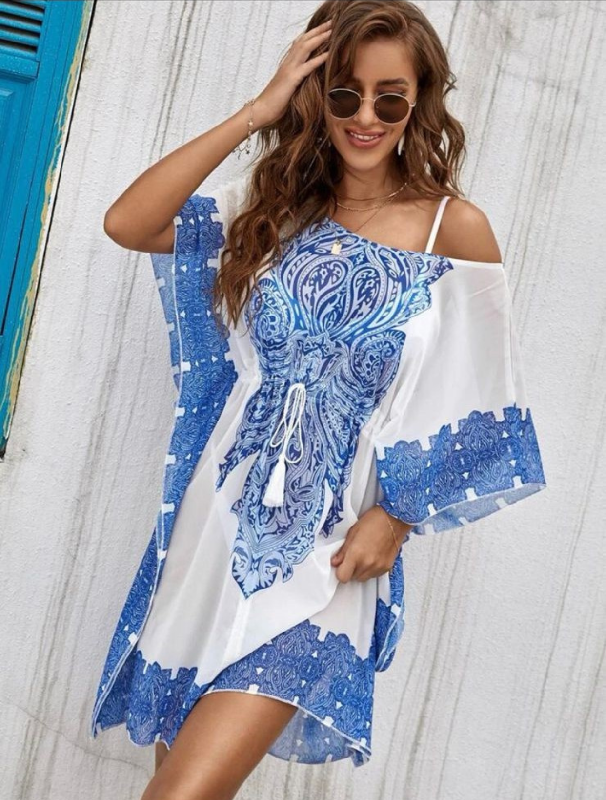 Our Blue & White Paisley Cover Up Dress is a perfect blend of beachy charm and timeless style. This dress showcases a captivating blue and white paisley pattern that exudes a sense of relaxation and beauty. Designed for easygoing elegance, it's the ideal choice for slipping over your swimsuit or for a casual summer look. Embrace the laid-back vibes with this versatile cover-up that effortlessly adds a touch of sophistication to your beach or poolside ensemble.